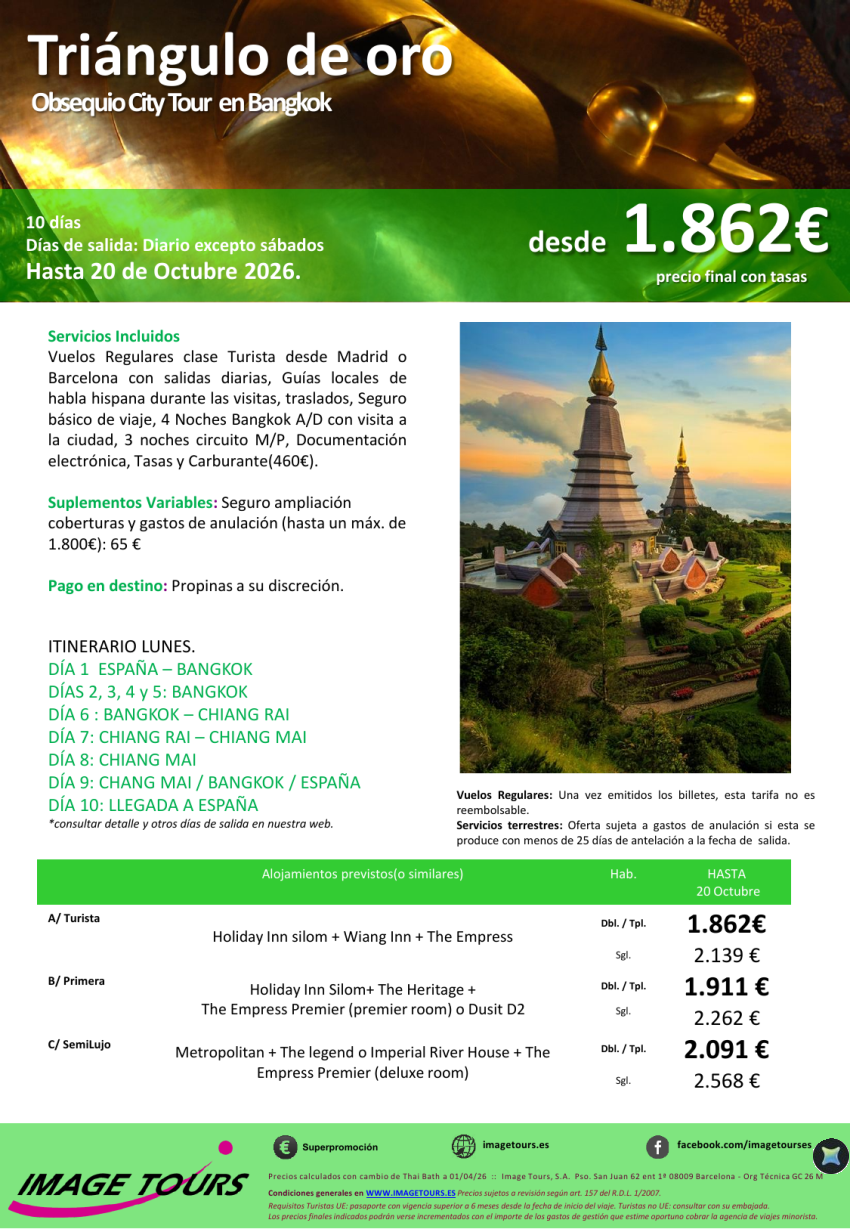 Tailandia: Triángulo de oro, 10 días con Obsequio City Tour en Bangkok desde 1.862€