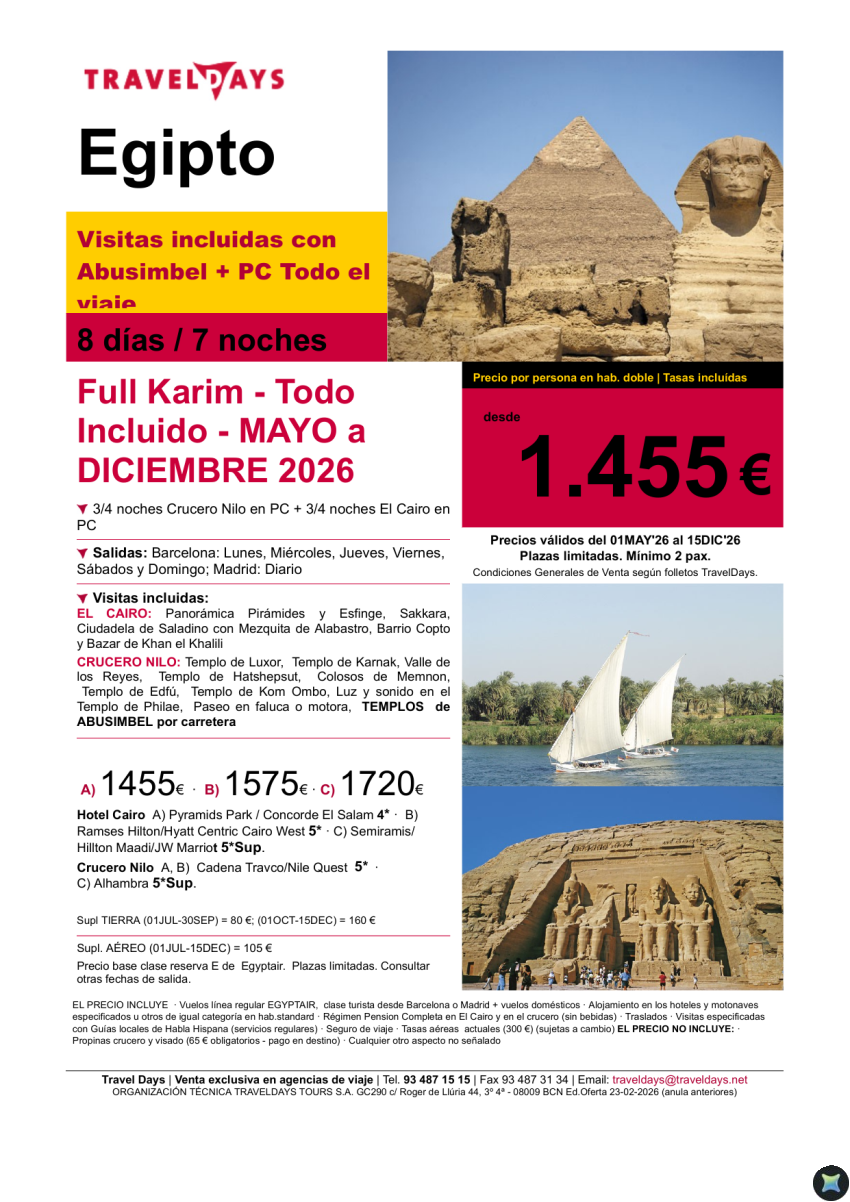 Egipto - Full Karim 8 días en PC todo el viaje desde BCN/MAD a partir de Mayo desde 1.455 €